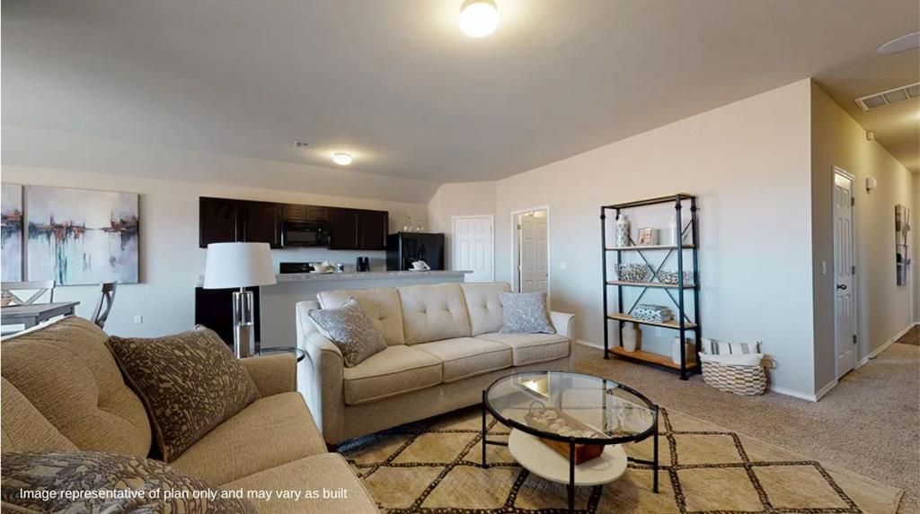 The MAGNOLIA floor plan is a four-bedroom home that offers convenient single-story living. An open-concept layout combines the kitchen, living and dining areas, with a nearby covered patio providing simple indoor-outdoor living. All four bedrooms are tucked away to the side of the home for optimal privacy and comfort, including the lavish owner's suite with a full bathroom and walk-in closet. Prices, dimensions and features may vary and are subject to change. Photos are for illustrative purposes only. Home is currently under construction with anticipated completion in June.